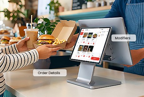 - Display modifiers, promotions, and menu details clearly.